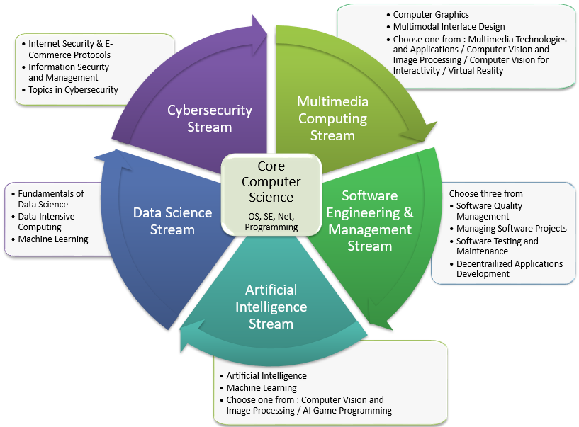 - FIVE Study Streams are provided to allow students to study in depth in a Selected area in Computer Science based on their own interests and future career aspiration.